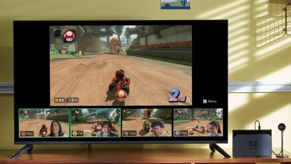 Con GameChat, è possibile organizzare chat vocali con fino a 12 persone e condividere lo schermo durante il gioco. Inoltre, la funzione permette videochiamate grazie a una videocamera USB-C compatibile (venduta da Nintendo), rendendo più facile interagire con gli altri senza uscire dal gioco. Per utilizzare GameChat inoltre, è necessario un abbonamento a Nintendo Switch Online (reso gratuito fino al 31/03/2026).