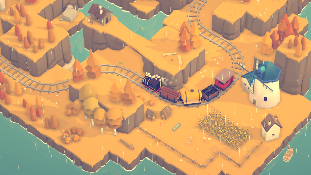 L’anima cozy di Islands & Trains diventa particolarmente evidente, oltre che nel gameplay, nella sua veste grafica. Quello stile un po’ abbozzato, a metà tra Islanders e Townscaper, e una palette di colori incentrata su toni caldi e morbidi dipingono un affresco di completa serenità. Al momento, la demo contiene ben tre diverse ambientazioni: a tema primaverile, estivo e autunnale, ciascuno con i propri alberi e qualche effetto speciale, come la pioggia. Sebbene il mondo di gioco rimanga alquanto statico (con l’eccezione del treno) si possono comunque apprezzare alcuni elementi che aiutano a dare vita all’ambiente circostante. Sarà difficile, inoltre, non lasciarsi cullare dalla melodia di sottofondo e perdersi per qualche ora tra camini fumanti e vedute d’altri tempi.