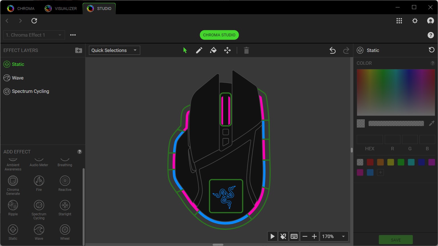 Sul lato software non possiamo davvero lamentarci, infatti al primo collegamento del mouse automaticamente si avvierà il processo di installazione di “Synapse 4“, con cui possiamo personalizzare ogni dettaglio: mappatura tasti, profili DPI, HyperShift, assegnazioni RGB, rotellina, polling rate, funzioni macro.