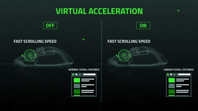 La HyperScroll Tilt Wheel è una rotella a quattro direzioni con la funzione Smart-Reel, che le permette di passare automaticamente dalla modalità a scatti a quella libera. Utile in produttività, e sorprendentemente comoda anche nel gaming e nella navigazione.